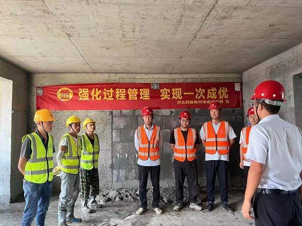 “为了强化全员质量意识,弘扬工匠精神,促进操作技能、管理技能提升,现开展质量月技能竞赛……”项目主管师蔡昭作为总裁判作了赛前动员,宣布了比赛内容、规则、程序、评分标准等,今年新入职职工、部分作业工人及工长观赛。